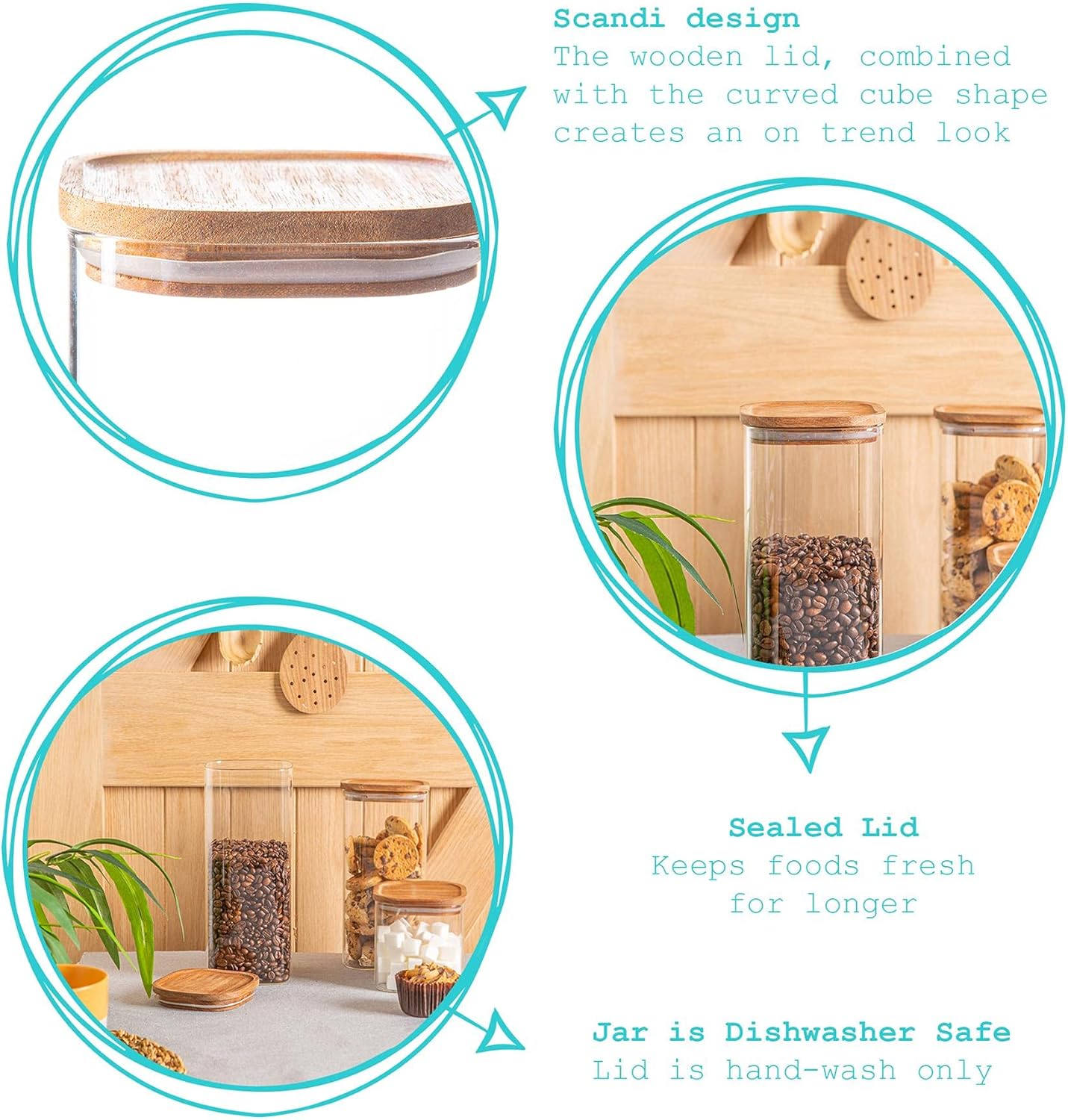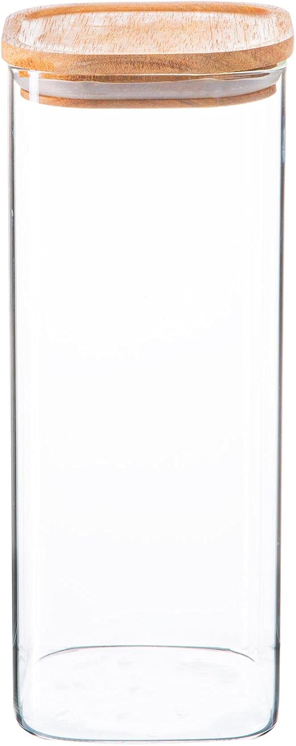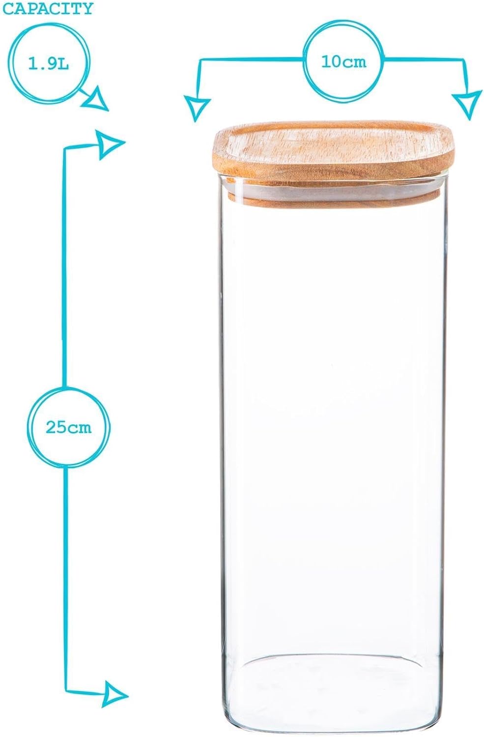 Argon Tableware Square Glass Storage Jar with Airtight Wooden Lid - 1900ml