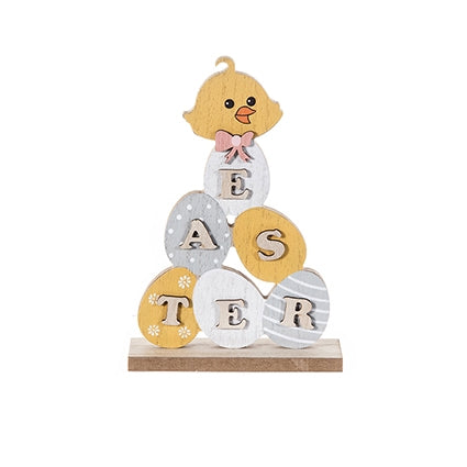 Wooden Easter Chick with Eggs Decoration 18cm