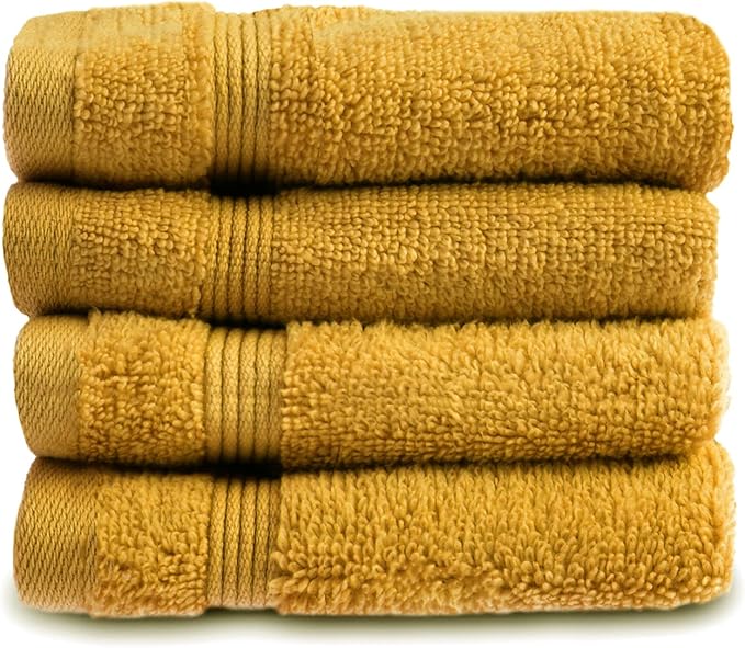 Allure Zero Twist Face Cloths Pack of 4 30 x 30cm, 100% Egyptian Cotton Flannels (Mustard)