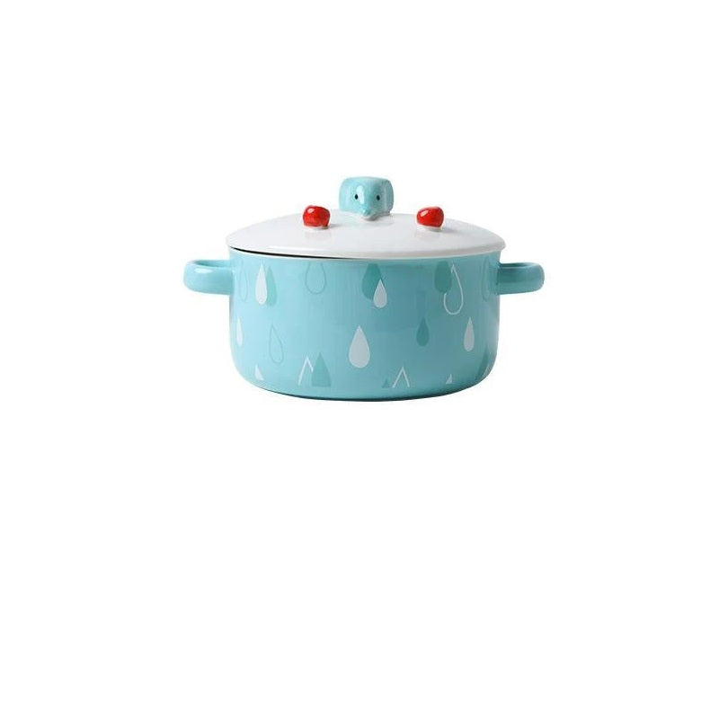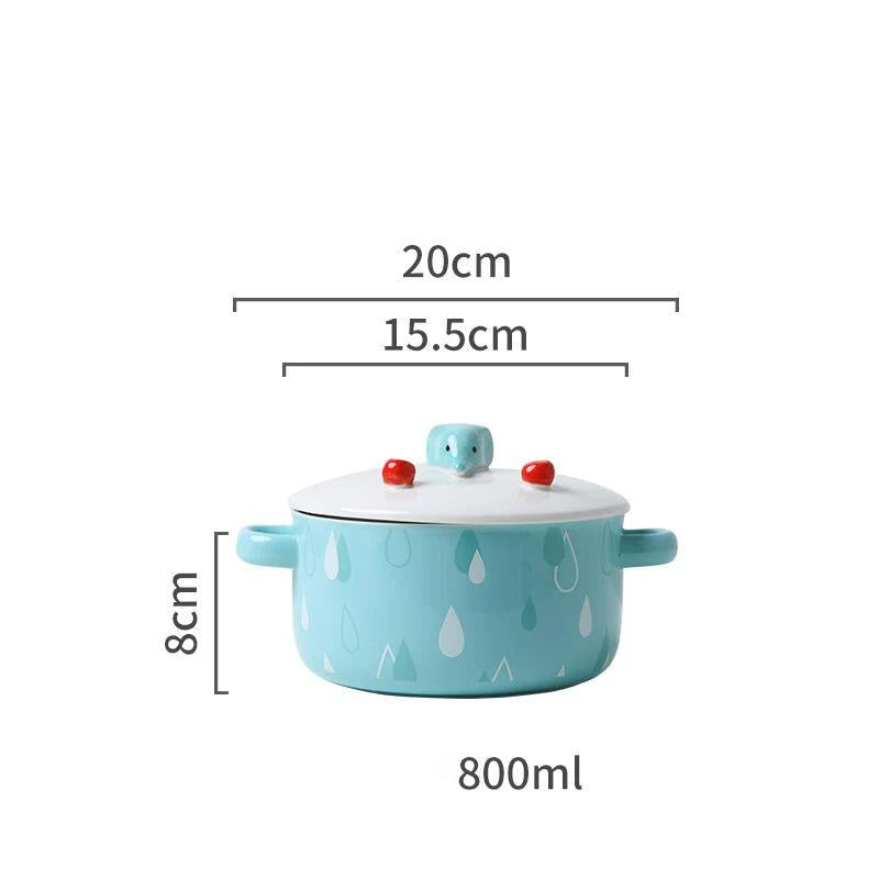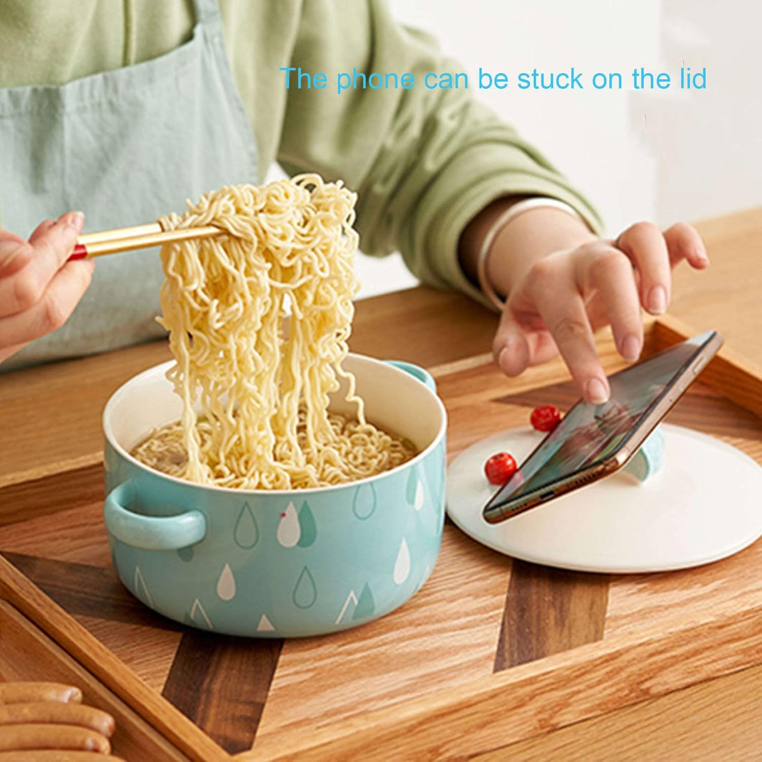 Blue Japanese Ceramic Noodle Bowl with Lid & Handle – 800ml Ramen Soup Bowl