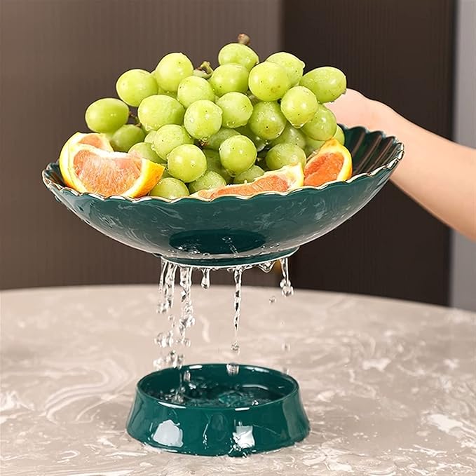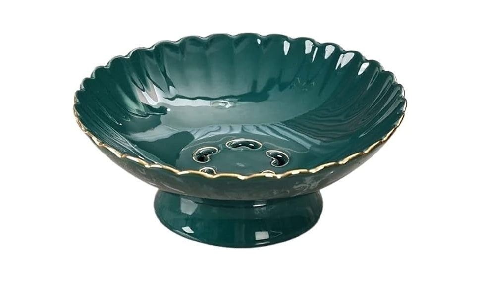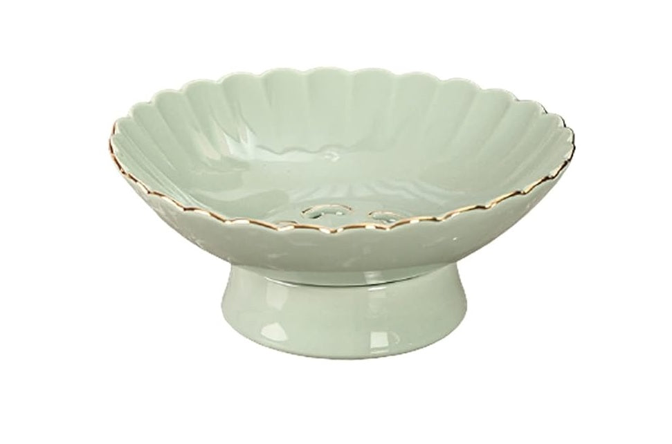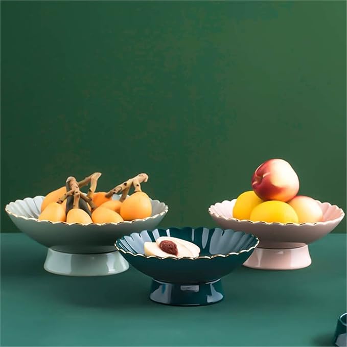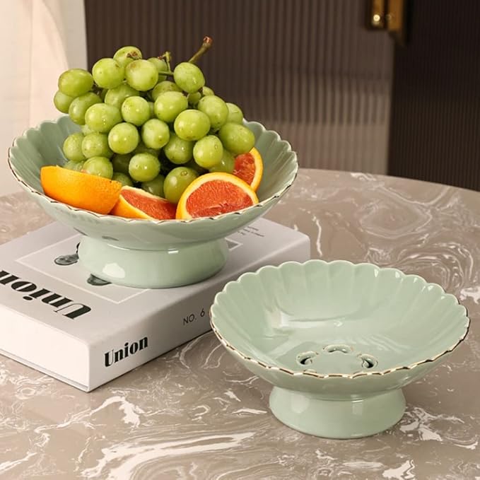 Ceramic Pedestal Fruit Bowl – Scalloped Decorative Serving Stand for Fruit, Snacks & Desserts