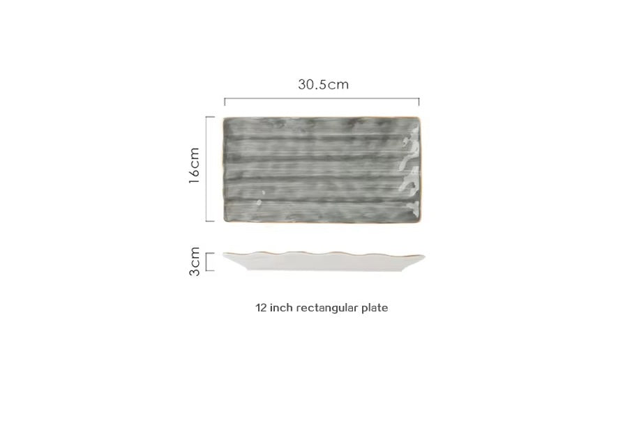 Nordic Grey Rectangular Ceramic Serving Plate – 12 Inch with Gold Rim