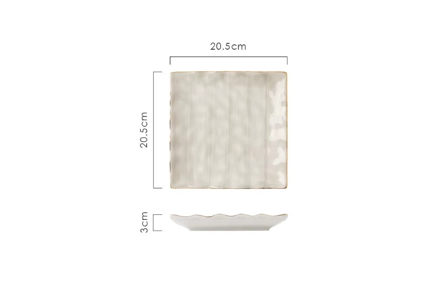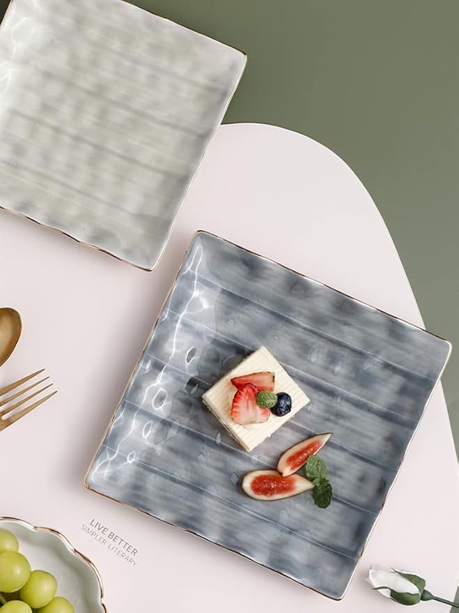 Nordic Grey Square Ceramic Plate – 8 Inch with Gold Rim