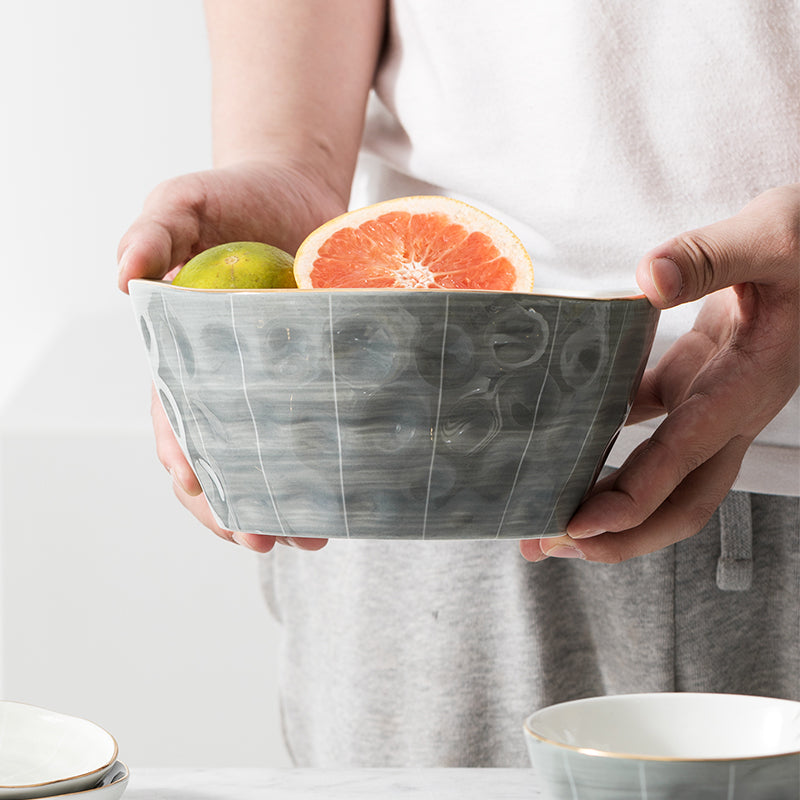 Nordic Grey Ceramic Soup Bowl – 8 Inch with Gold Rim