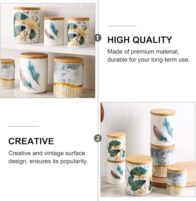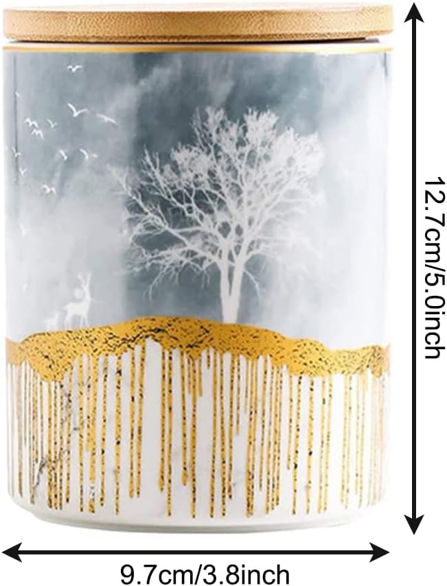 Ceramic Storage Canister with Wooden Lid – Large | Grey & Gold Decorative Jar