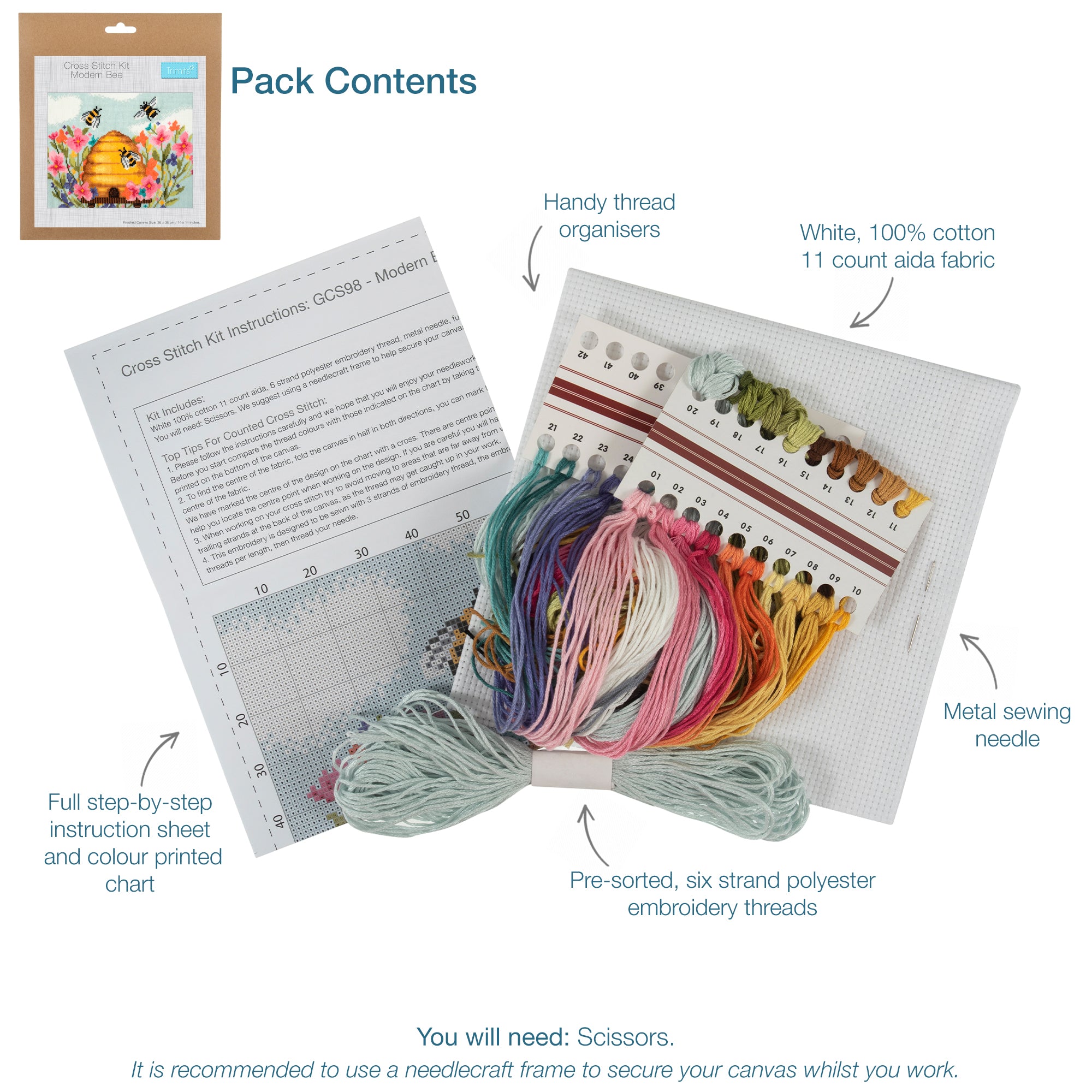 Counted Cross Stitch Kit: Large: Modern Bee