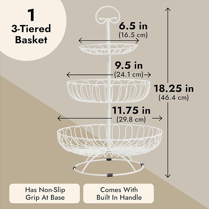 3-Tier Stainless Steel Fruit Basket Stand for Kitchen and Home Storage