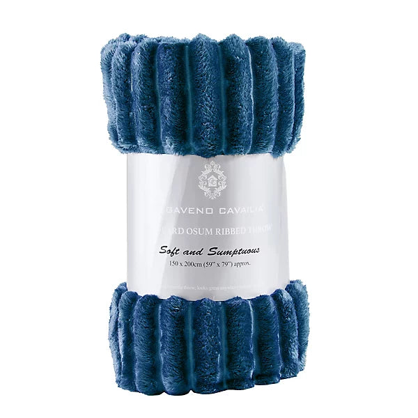 GC GAVENO CAVAILIA Fleece Blankets Double 150x200cm Ribbed Cosy Bed Throw Blanket Exra Warm Throws for Sofas, Chair, Couch Navy