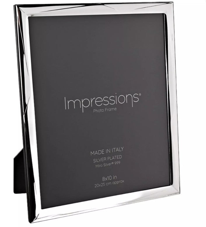 Impressions 999 Silver Geometric Photo Frame 8" x 10" Wood Back Made In Italy