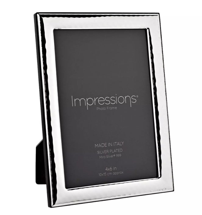 Impressions 999 Silver Hammered Photo Frame 4" x 6" Wood Back Made In Italy