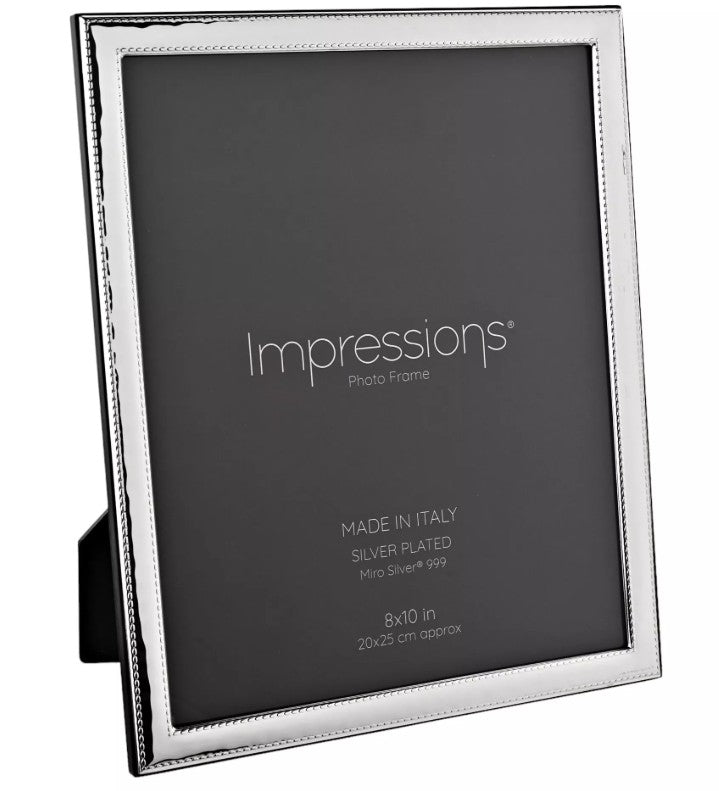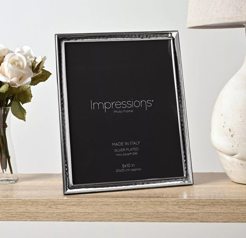 Impressions 999 Silver Narrow Rock Photo Frame 8" x 10" Wood Back Made In Italy