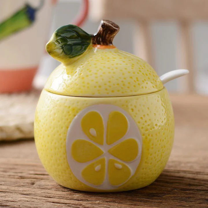 Lemon Shaped Ceramic Sugar Pot with Lid & Spoon – Kitchen Storage Jar