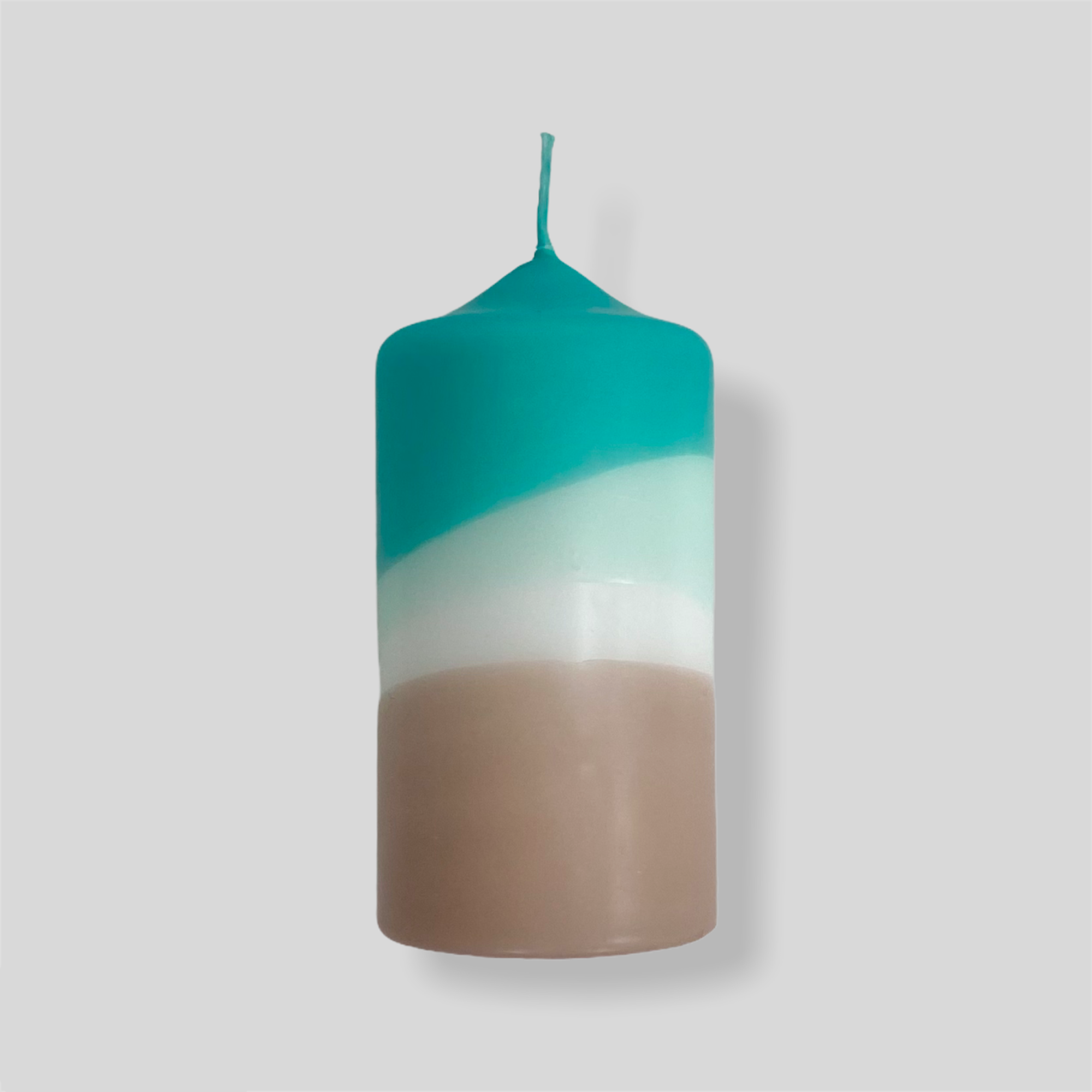 Pink Stories Dip Dye Pillar Candle – Teal, White & Sand – 13cm